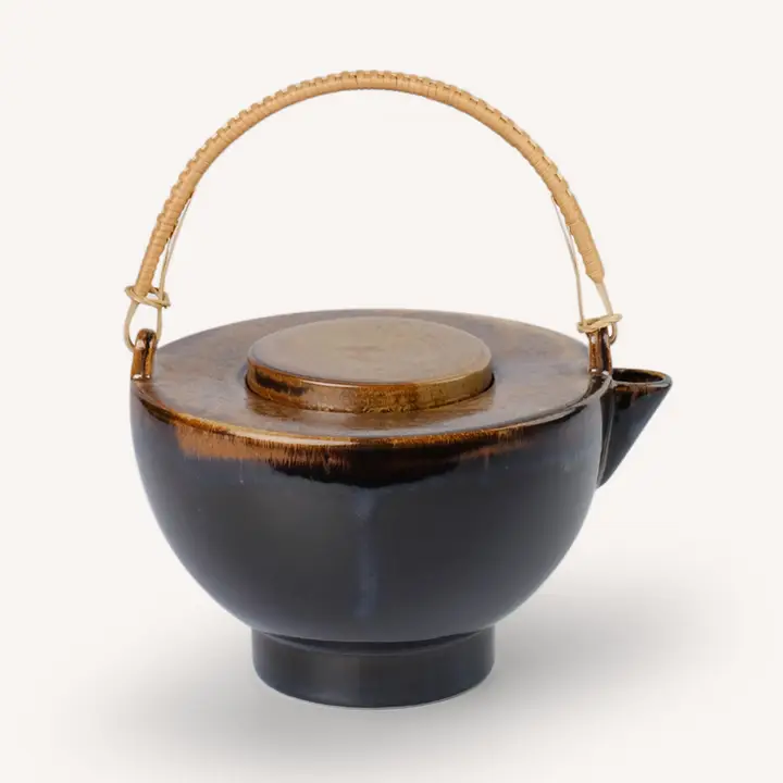 L’indochineur-Rivêt, Théière empreinte avec anse en rotin