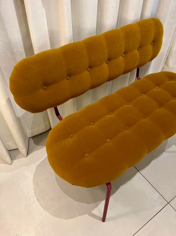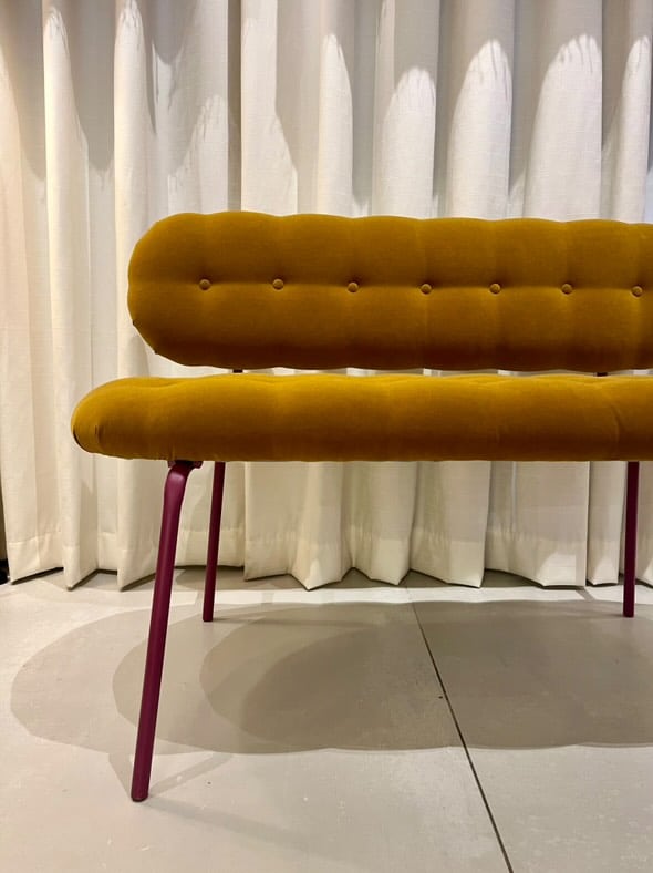 Ce banc dont le boutonnage soigné sublime la pièce.
