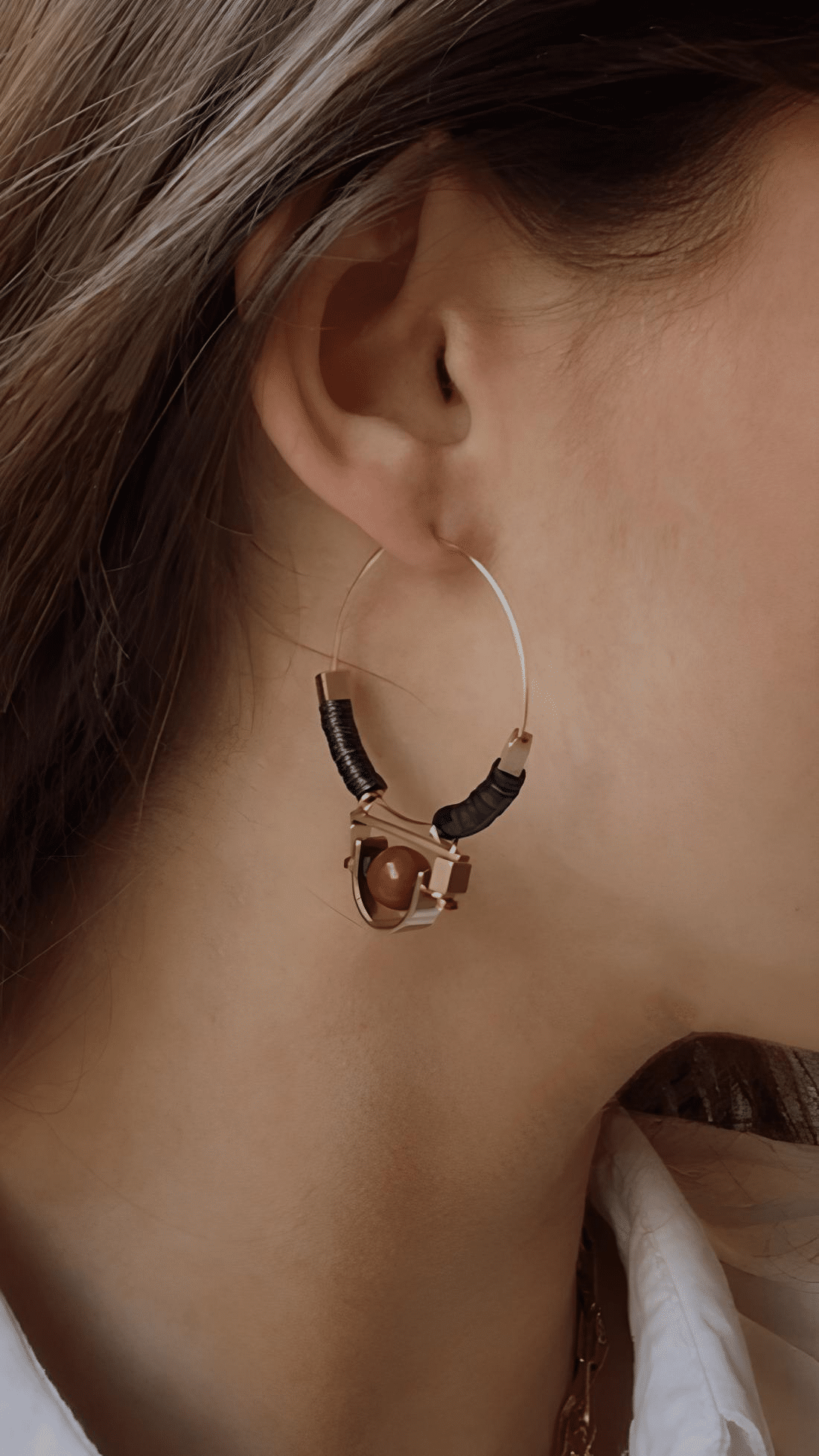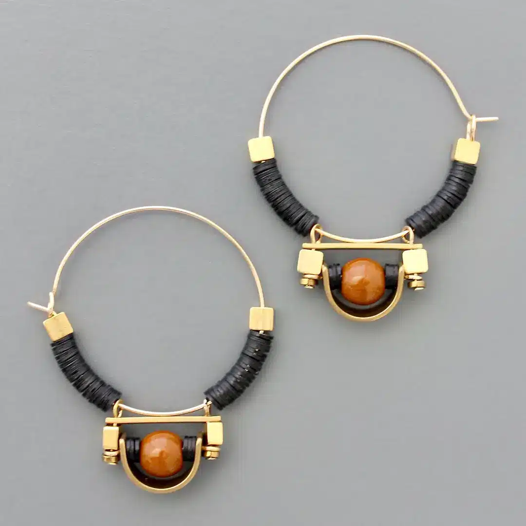Composition : laiton plaqué or avec vulcanite noire et verre marron