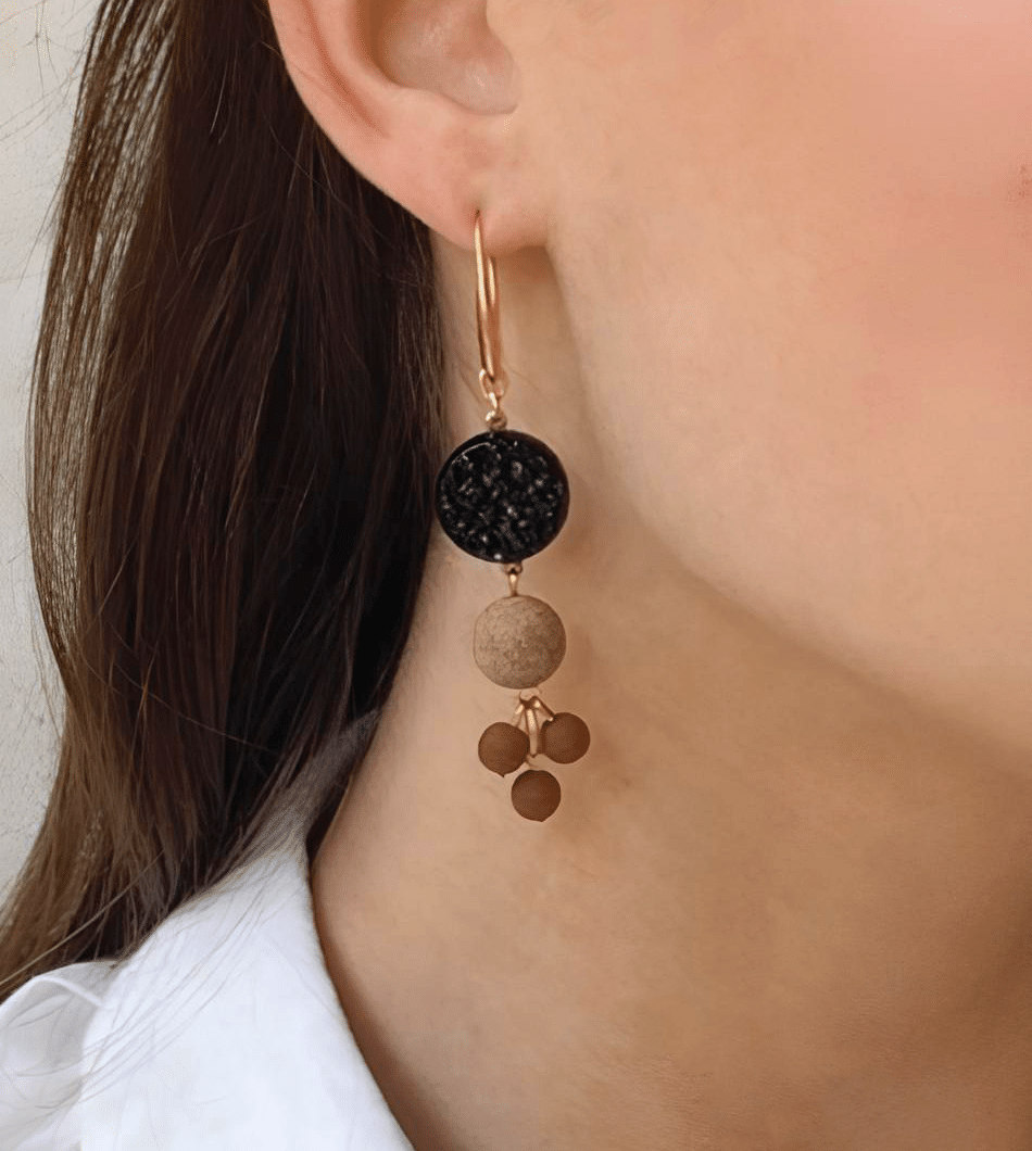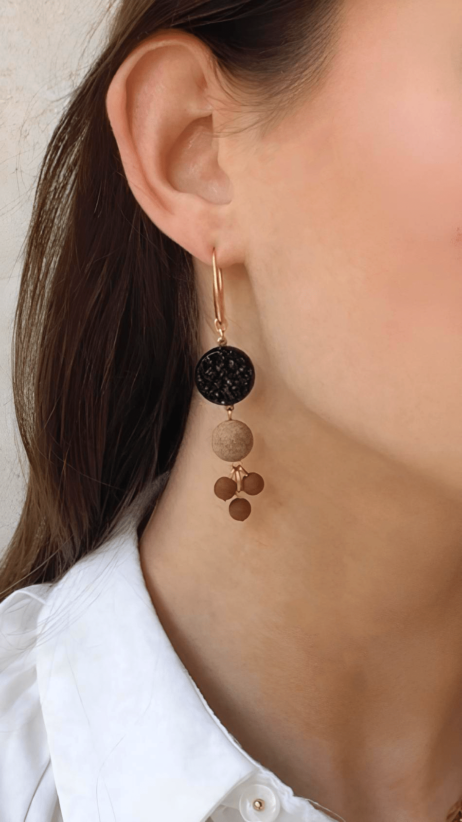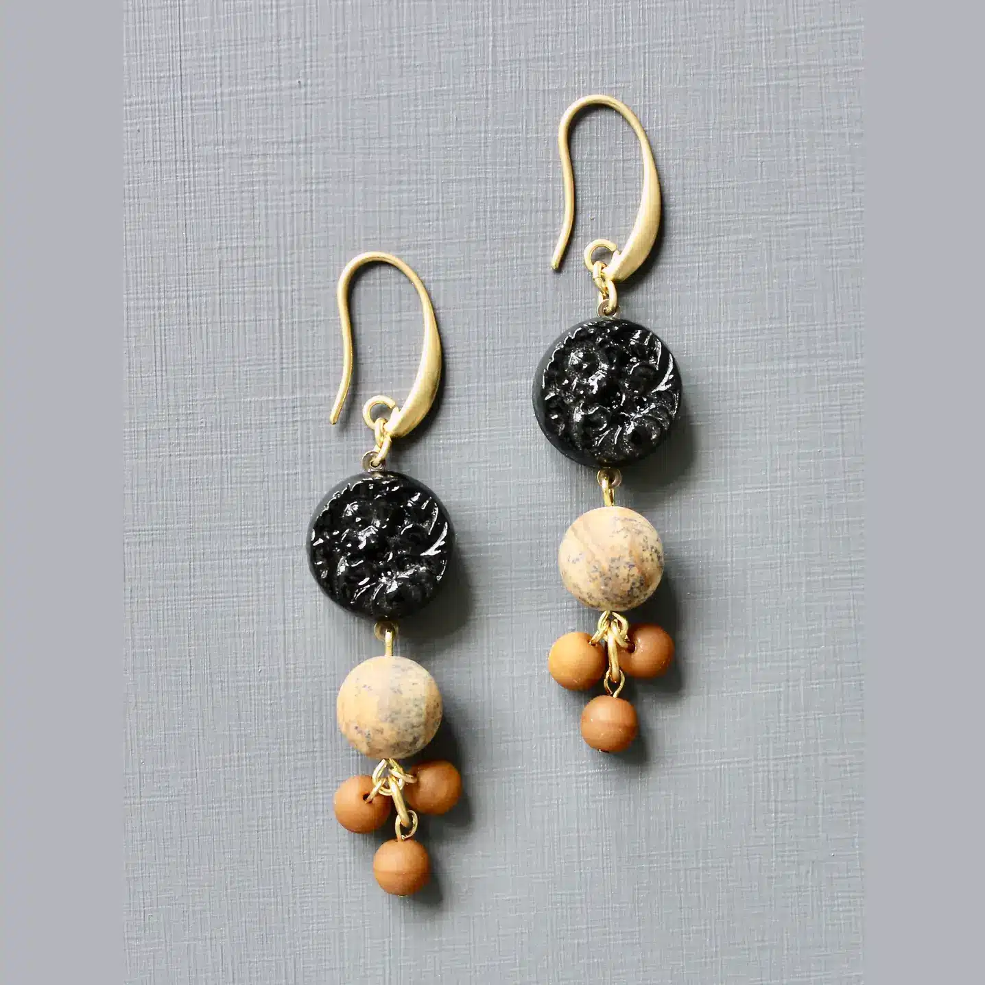 Composition : Crochets en laiton plaquรฉ or 18 carats avec verre pressรฉ japonais vintage, jaspe et verre.