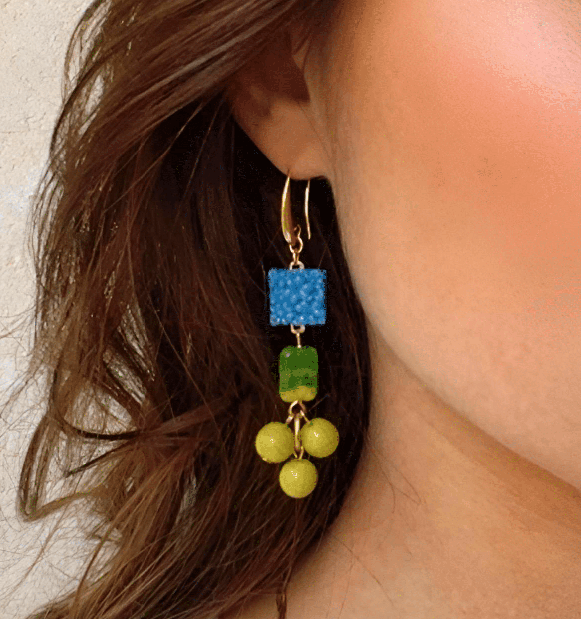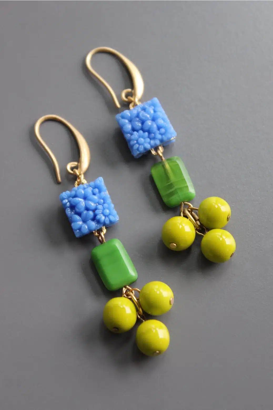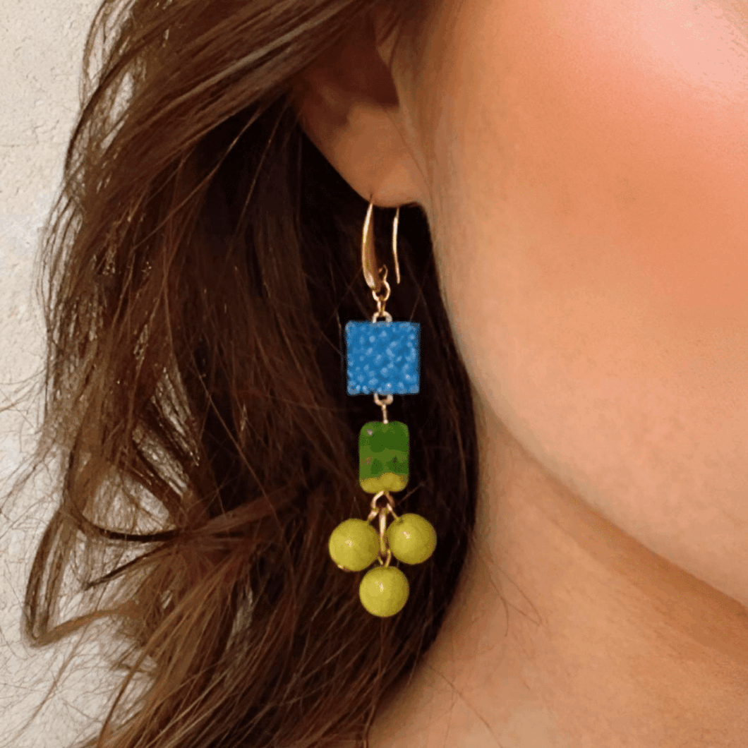 David Aubrey – Boucles d’oreilles verre pressé japonais vintage et verre tchèque