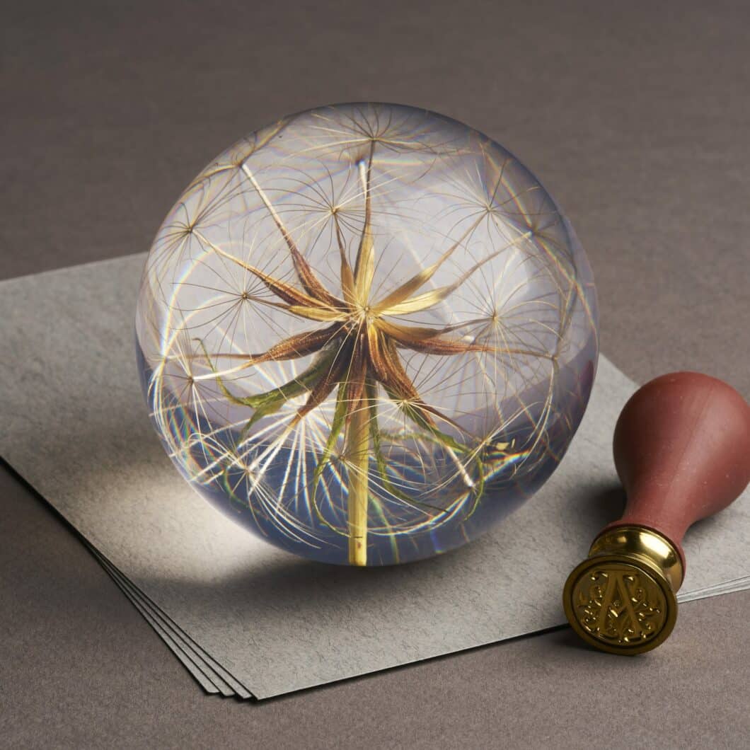 Magnifique presse-papier contenant un goatsbeard (Tragapogon pratensis). Une rรฉsine polyester transparente, enrichie d’un filtre UV pour prรฉvenir la dรฉcoloration, est utilisรฉe pour incorporer le spรฉcimen botanique sans lโabรฎmer, et sa forme sphรฉrique permet dโadmirer toute sa beautรฉ sous tous les angles.