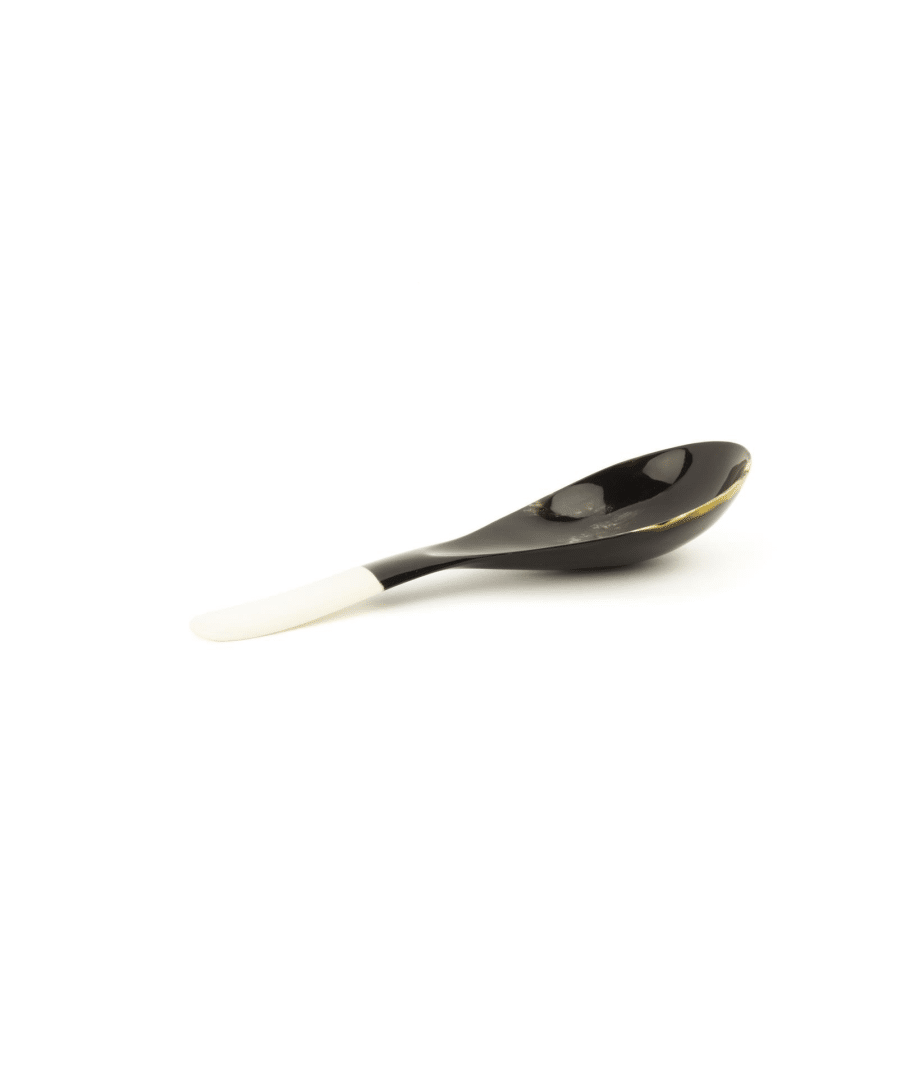 Couleur : blanc, noir, beige avec reflets cuivrés. Chaque cuillère est differente.