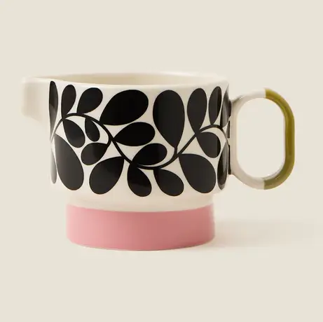 Apportez une touche de couleur et de style à votre table avec le pot à lait Orla Kiely Sycamore Stripe. Conçu à Londres et fabriqué en céramique, il se distingue par son motif emblématique de feuilles de sycomore noires, sublimé par une base à rayures rose audacieuse. Compact et élégant, il est idéal pour servir lait ou crème lors de vos petits-déjeuners et pauses café.
