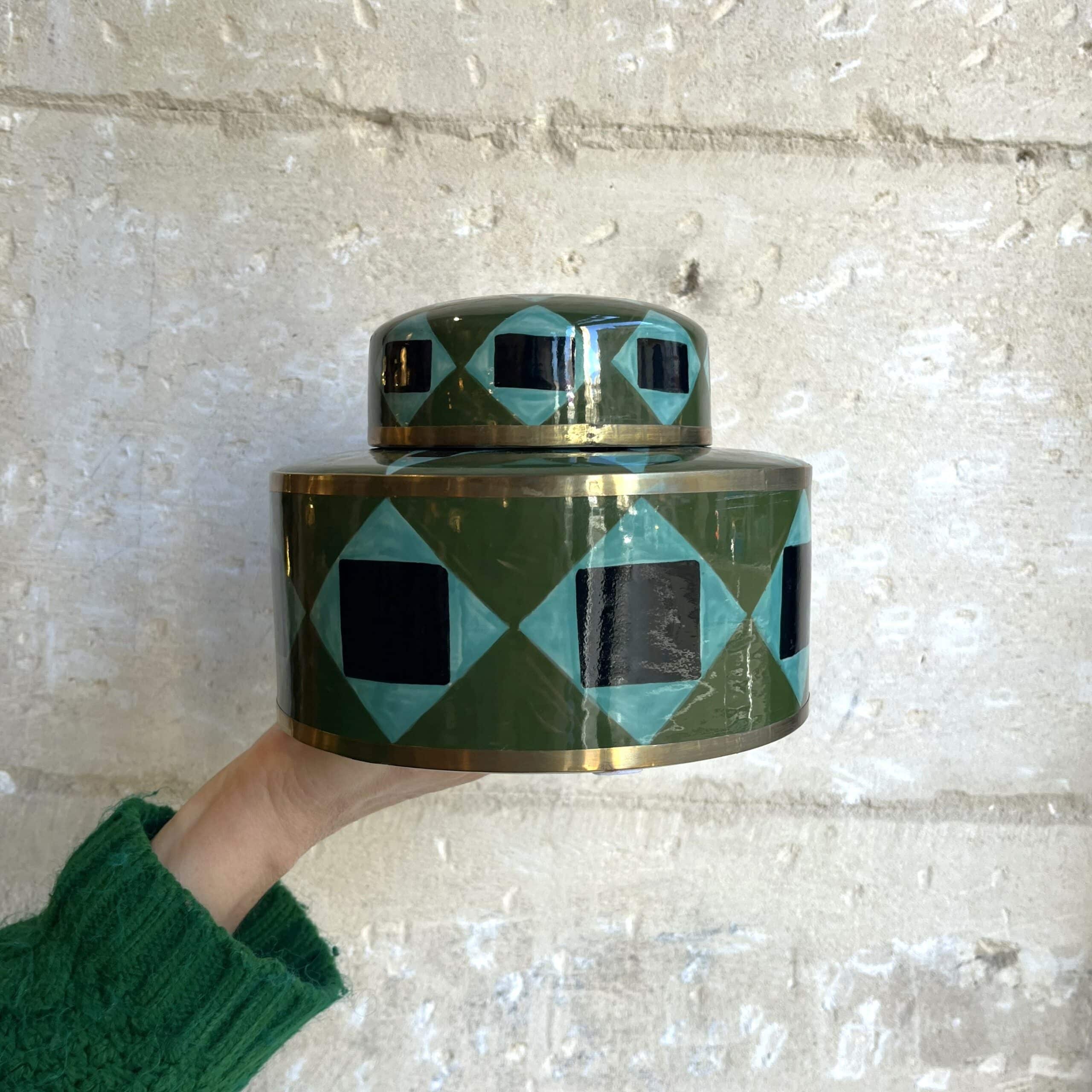 Né du savoir-faire thaïlandais, le vase avec couvercle MOMO d’Osten Interieur est une pièce de céramique d’une grande délicatesse. Façonné et raffiné à plusieurs reprises, il révèle une matière profonde, sublimée par une bordure dorée travaillée qui évoque l’art décoratif asiatique.Chaque vase est peint à la main, offrant des nuances uniques qui témoignent de son caractère artisanal. Ses courbes intemporelles et son couvercle élégant en font un objet décoratif à part entière.